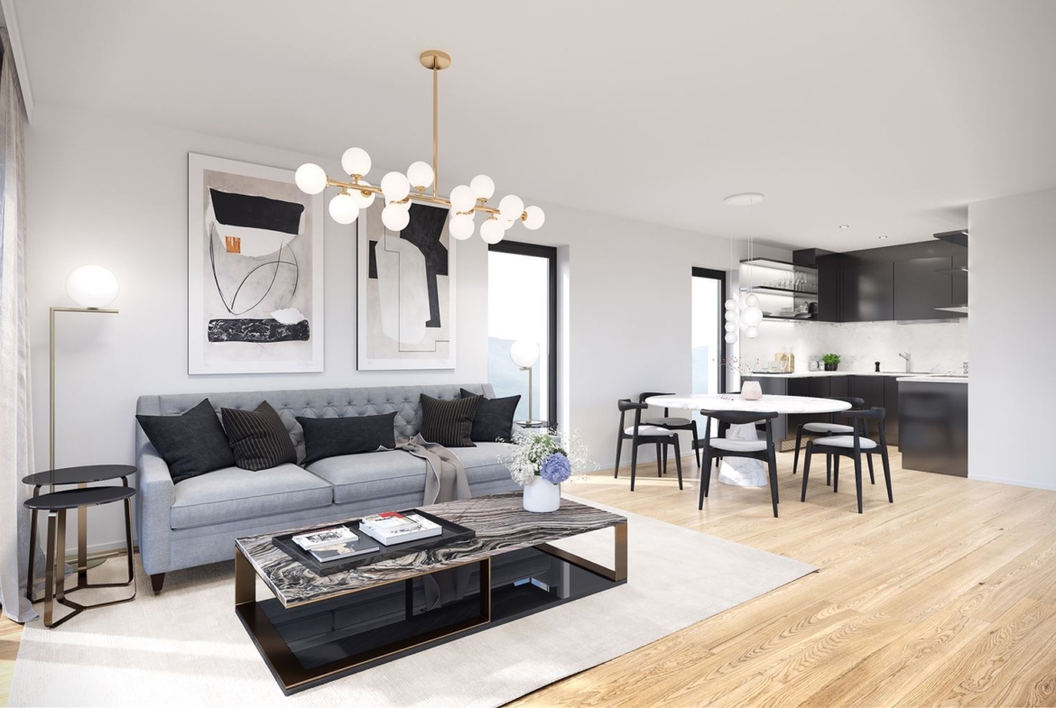 Предава се на шпакловка и замазка с блиндирана входна врата, висококачествена дограма, ВиК на тапи, ел. инсталация с монтирани табла, изградена система за TV и интернет, инсталацията за отводняване на климатичните тела и газовите котли включена в канализационната система на сградата и Smart home система.