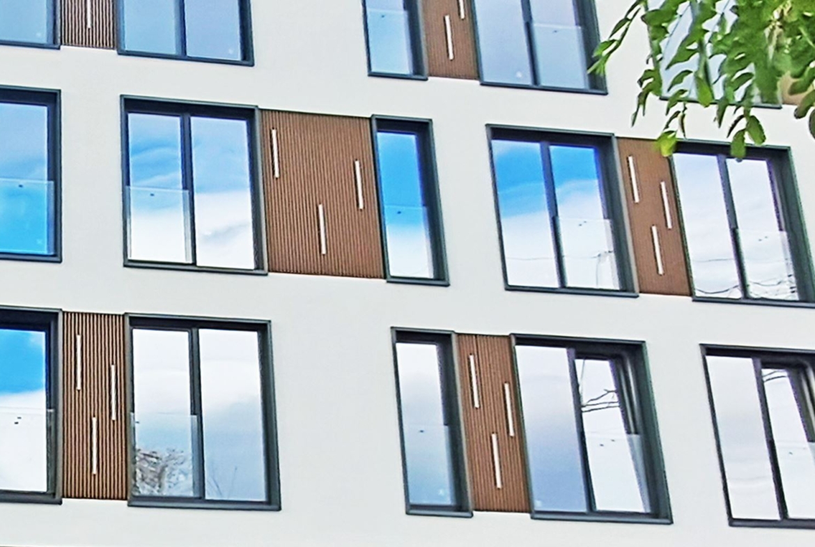 Сградата е елегантна и изпълнена с висок клас материали, безшумни електрически асансьори, богато озеленено и осветено околоблоково пространство.